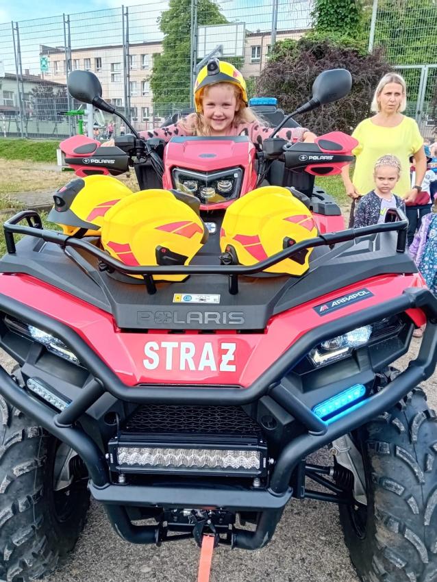 Jakub Wańczyk, którzy w bardzo ciekawy sposób przybliżyli naszym przedszkolakom swój zawód. Dzieci mogły obejrzeć pojazdy, które wykorzystują w swojej pracy, całe wyposażenie wozu oraz przymierzyć kask. Dodatkową atrakcją była możliwość samodzielnego lania wody, a także sygnał wozu strażackiego. Była to nie tylko niezwykła atrakcja, ale także cenna lekcja. Dziękujemy naszym bohaterom za odwiedziny i zapraszamy częściej do naszego przedszkola.