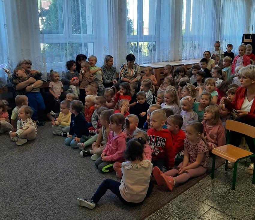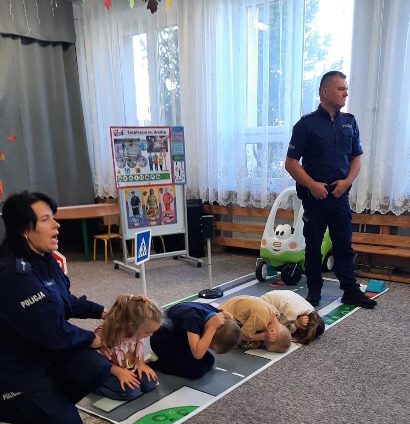 1 października b.r. nasze przedszkole odwiedzili policjanci z Posterunku Policji w Tarnogrodzie. Głównym celem wizyty było przypomnienie podstawowych zasad bezpieczeństwa oraz zapoznanie z zawodem policjanta. Nasi goście przybliżyli dzieciom podstawowe zasady bezpiecznego poruszania się po drogach, przypomnieli numery alarmowe oraz zasady zachowania się podczas spotkania z nieznajomym. Nasze przedszkolaki dowiedziały się, jak bezpiecznie podróżować, jak ważne jest zapinanie pasów bezpieczeństwa podczas jazdy samochodem. Policjanci nawiązali również do konieczności noszenia ubrań i obuwia posiadającego elementy odblaskowe.