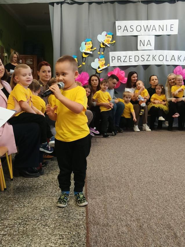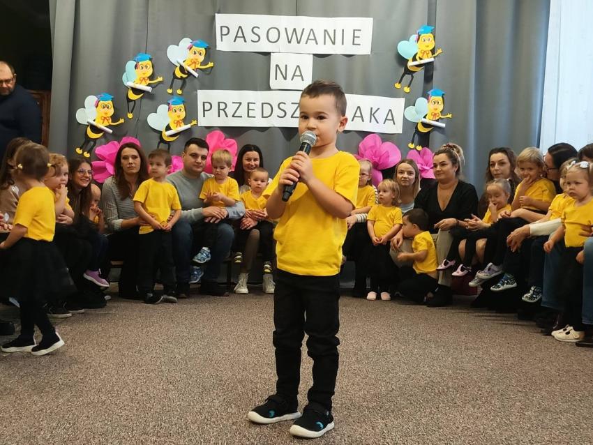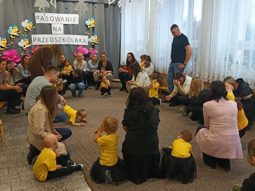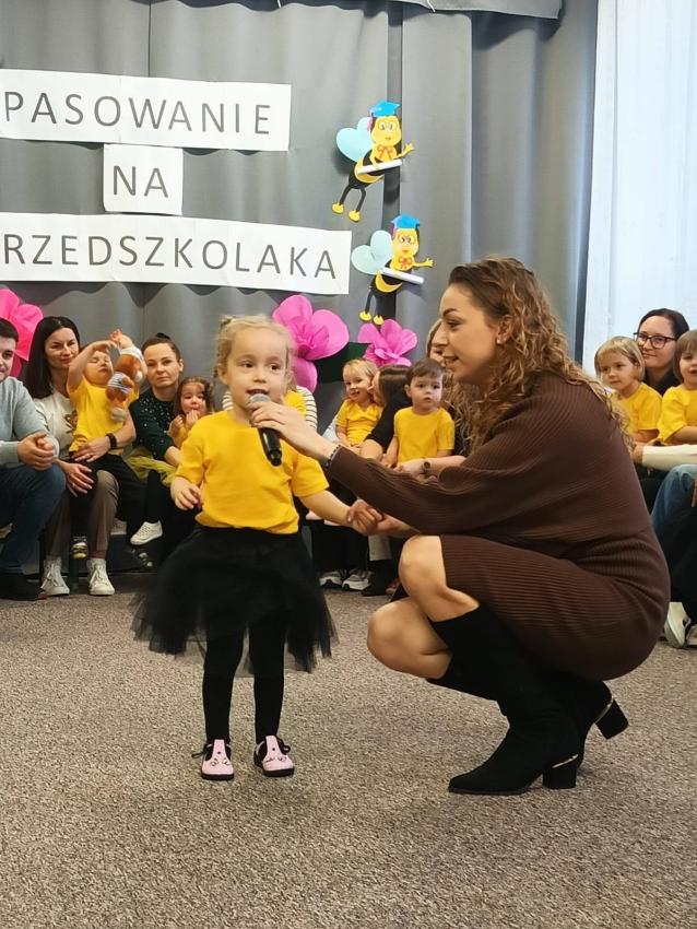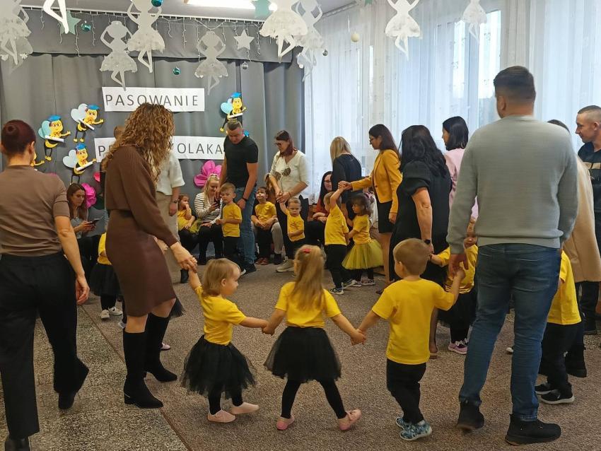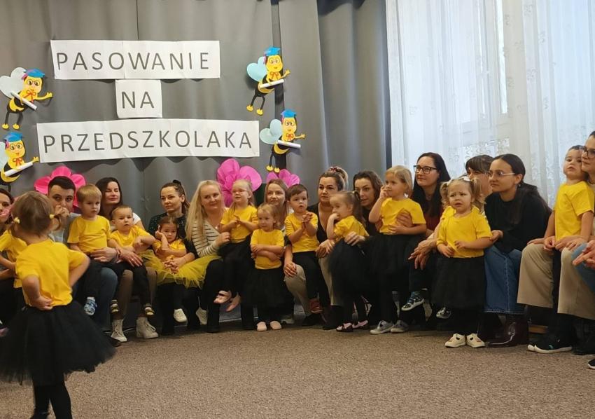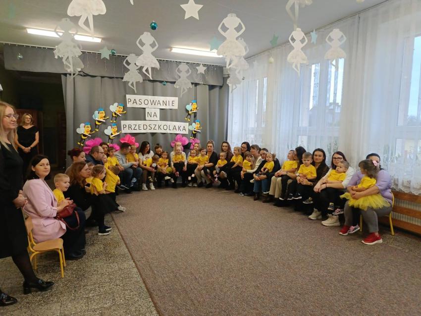 W dniu 04.12.2025r. w Przedszkolu Miejskim w Tarnogrodzie odbyła się niezwykle uroczysta i długo wyczekiwana ceremonia Pasowania na Przedszkolaka dzieci 2,5 i 3 letnich z grupy "Pszczółek".W wydarzeniu wzięły udział " Biedroneczki" wraz ze swoimi wychowawczyniami, które z dumą obserwowały przygotowane przez najmłodszych przedszkolaków występy.Uroczystość rozpoczęła się częścią artystyczną.Dzieci zaśpiewały piosenki, zatańczyły, wyrecytowały wierszyki, zdobywając gromkie brawa od zgromadzonych gości.Przedszkolaki prezentowały się wyjątkowo - odświętne stroje i uśmiechy na ich twarzach podkreślały wagę tej chwili. Kulminacyjnym punktem wydarzenia było uroczyste pasowanie ołówkiem przez panią dyrektor, podczas którego każde dziecko zostało oficjalnie przyjęte do grona przedszkolaków. Po złożeniu krótkiej przysięgi wszyscy otrzymali pamiątkowe dyplomy, które będą przypominać o tym ważnym i wyjątkowym dniu.Po części artystycznej rodzice przygotowali słodki poczęstunek, który stał się doskonałą okazją do wspólnego świętowania, rozmów i integracji. Atmosfera uroczystości była pełna ciepła i radości.Dla wielu dzieci było to pierwsze tak ważne wydarzenie w ich przedszkolnym życiu, a wspomnienia z tego dnia z pewnością pozostaną z nimi i ich rodzinami na długo. Pasowanie stało się pięknym początkiem ich przedszkolnej przygody, pełnej nowych doświadczeń i wspólnej zabawy.