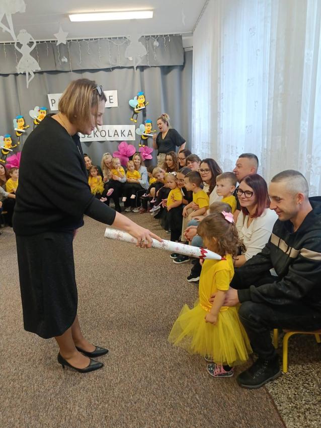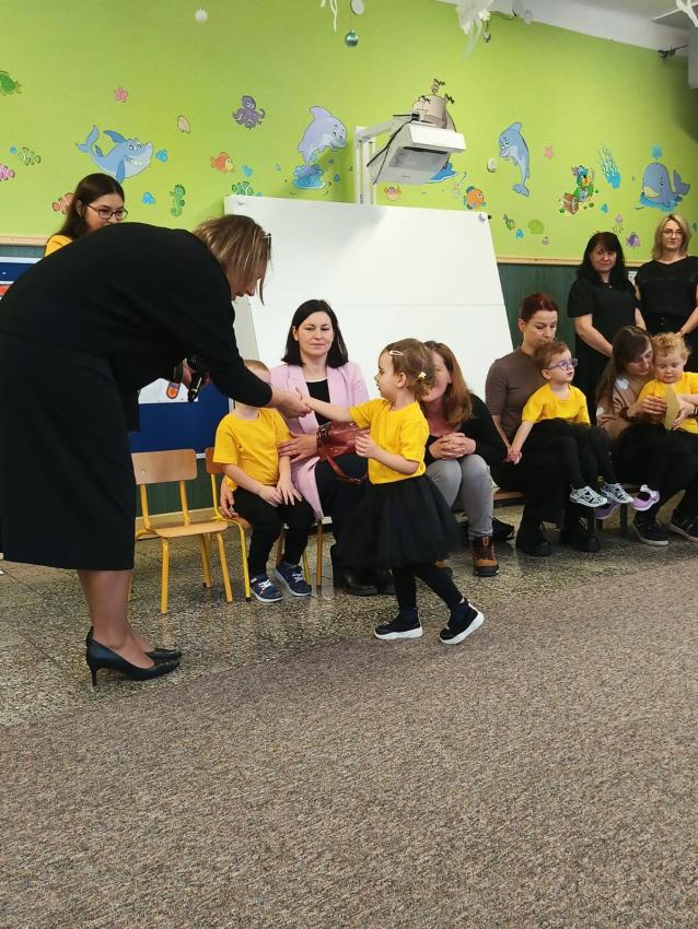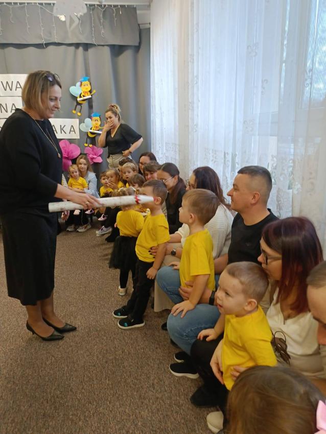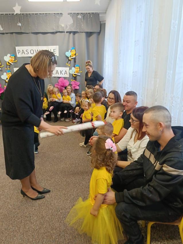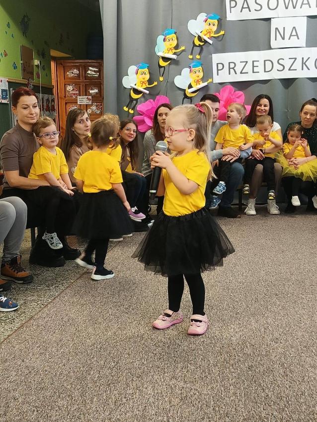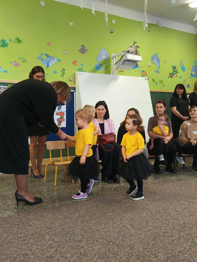 W dniu 04.12.2025r. w Przedszkolu Miejskim w Tarnogrodzie odbyła się niezwykle uroczysta i długo wyczekiwana ceremonia Pasowania na Przedszkolaka dzieci 2,5 i 3 letnich z grupy "Pszczółek".W wydarzeniu wzięły udział " Biedroneczki" wraz ze swoimi wychowawczyniami, które z dumą obserwowały przygotowane przez najmłodszych przedszkolaków występy.Uroczystość rozpoczęła się częścią artystyczną.Dzieci zaśpiewały piosenki, zatańczyły, wyrecytowały wierszyki, zdobywając gromkie brawa od zgromadzonych gości.Przedszkolaki prezentowały się wyjątkowo - odświętne stroje i uśmiechy na ich twarzach podkreślały wagę tej chwili. Kulminacyjnym punktem wydarzenia było uroczyste pasowanie ołówkiem przez panią dyrektor, podczas którego każde dziecko zostało oficjalnie przyjęte do grona przedszkolaków. Po złożeniu krótkiej przysięgi wszyscy otrzymali pamiątkowe dyplomy, które będą przypominać o tym ważnym i wyjątkowym dniu.Po części artystycznej rodzice przygotowali słodki poczęstunek, który stał się doskonałą okazją do wspólnego świętowania, rozmów i integracji. Atmosfera uroczystości była pełna ciepła i radości.Dla wielu dzieci było to pierwsze tak ważne wydarzenie w ich przedszkolnym życiu, a wspomnienia z tego dnia z pewnością pozostaną z nimi i ich rodzinami na długo. Pasowanie stało się pięknym początkiem ich przedszkolnej przygody, pełnej nowych doświadczeń i wspólnej zabawy.