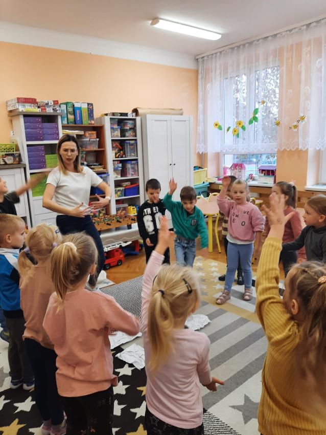 Dnia 25.03.2024 r. naszą grupę odwiedziła pani Ewa Charytanowicz-konsultantka wydawnictwa Mac Edukacja. Podczas spotkania, w ramach rozwijania zainteresowań czytelniczych, przeczytała dzieciom opowiadanie p.t. "Nie potrafię!" oraz przeprowadziła rozmowę na temat tolerancji . Na koniec przedszkolaki podziękowały pani Ewie i wręczyły upominek.