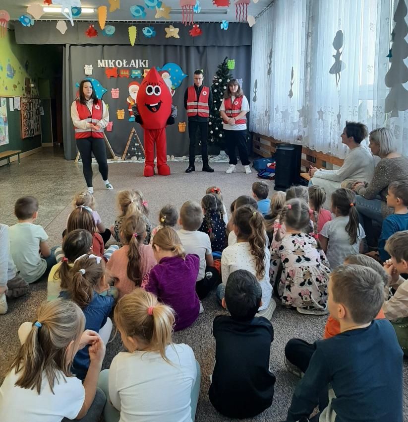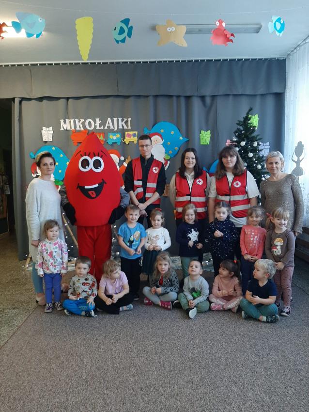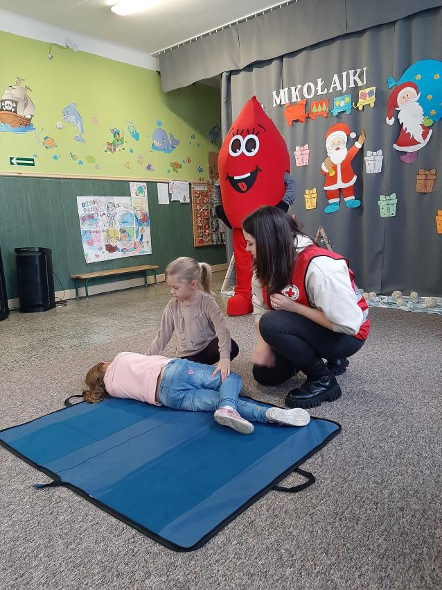 W dniu 05.12.2023r. nasze przedszkole odwiedzili Wolontariusze z PCK w Biłgoraju. Nasi goście poprowadzili zajęcia edukacyjne z zakresu udzielania pierwszej pomocy przedmedycznej. Miały one na celu kształtowanie pozytywnych i bezpiecznych postaw oraz zapoznanie najmłodszych z podstawowymi czynnościami ratowniczymi w wypadku nieobecności osób dorosłych. Przedszkolaki dowiedziały się w jaki sposób udziela się pierwszej pomocy, jak pomóc poszkodowanym zanim przyjedzie pogotowie ratunkowe. Dzieci z zainteresowaniem słuchały wskazówek dotyczących zachowania się w sytuacji zagrożenia życia np. skaleczenia, utraty przytomności, złamania czy krwotoku. Przeprowadziły resuscytacji na fantomie. Miały rownież możliwość poćwiczyć pozycję boczną bezpieczną dla poszkodowanego. Utrwaliły podstawowe numery alarmowe oraz jak wezwać pomoc przez telefon. Przedszkolaki wiedzą do kogo zwracać się gdy czują się zagrożone, same również są świadome konieczności zachowywania się w sposób bezpieczny taki, by apteczka i jej wyposażenie były jak najmniej potrzebne. Zgromadzoną wiedzę będą mogły wykorzystać w przyszłości przychodząc z pomocą koledze lub najbliższym z rodziny.