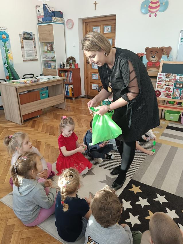 W czwartek 21 grudnia 2023r. wszystkie dzieci z naszego przedszkola otrzymały odblaski ufundowane przez prezesa Banku Spółdzielczego w Tarnogrodzie pana Piotra Mulawę. Podarowane odblaski mają przyczynić się do zwiększenia bezpieczeństwa naszych najmłodszych. Podczas wręczania odblasków, Pani Dyrektor Anna Sidor demonstrowała sposób prawidłowego użytkowania gadżetów. Przedszkolaki wysłuchały również krótkiej pogadanki, której celem było przypominanie i uświadamianie dzieciom o potrzebie korzystania z elementów odblaskowych i bezpiecznym poruszaniu się po drodze.
