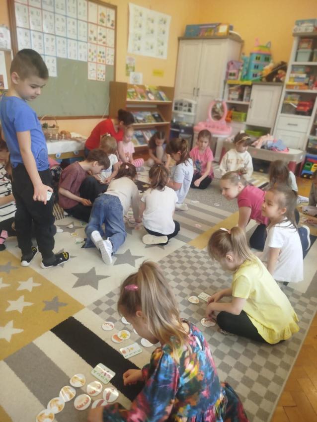 W dniu 09.04.2025 r.w grupie dzieci 5 i 6 letnich odbyły się zajęcia otwarte dla rodziców, podczas których dzieci wspólnie ze swoimi najbliższymi tworzyły tradycyjne palmy wielkanocne.W trakcie warsztatów dzieci wykazały się dużą wiedzą na temat zbliżających się Świąt Wielkanocnych, opowiadały o związanych z nimi tradycjach i zwyczajach.W trakcie zajęć rozwiązywały zadania matematyczne, logiczne oraz odgadywały zagadki, co sprawiło im wiele radości. Przedszkolaki wzięły także udział w matematyczno-ruchowej zabawie oraz masażyku z rodzicami, co dodatkowo wzmocniło więzi rodzinne. Na zakończenie, wspólnie z najbliższymi stworzyły piękne palmy, które staną się pamiątką tych wyjątkowych chwil.