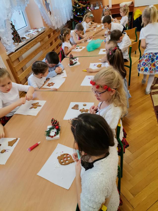 21 grudnia dzięki pomocy mamy Elizy i Dominika, które dostarczyły do przedszkola domowe wypieki, dzieci mogły osobiście doświadczać świątecznych przygotowań, podczas dekorowania pierniczków.